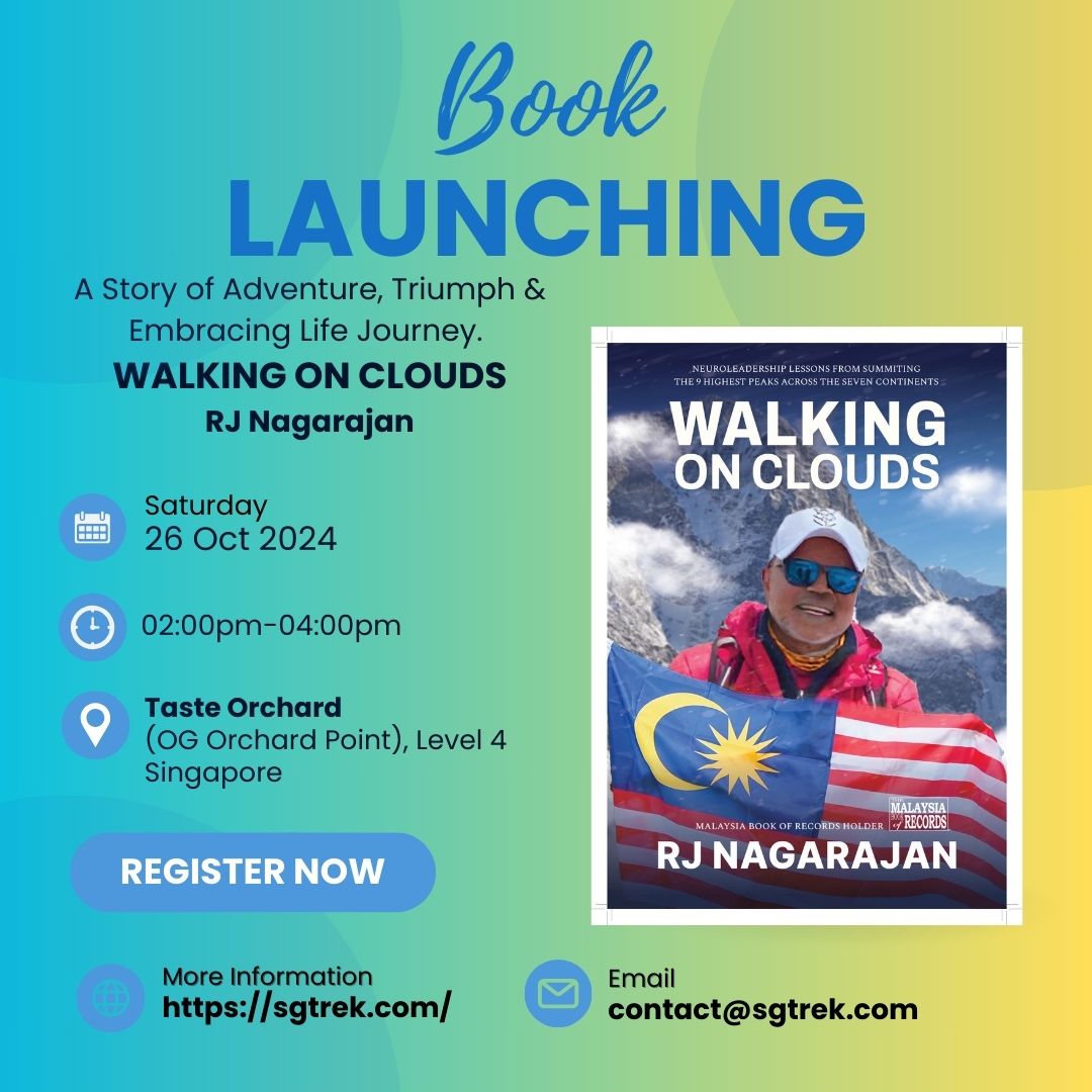 We are thrilled to invite you to the exclusive book launch of “Walking on Clouds” by Mr. RJ Nagarajan. Join us as he shares his captivating journey of adventure, triumph, and embracing life’s challenges through mountaineering.